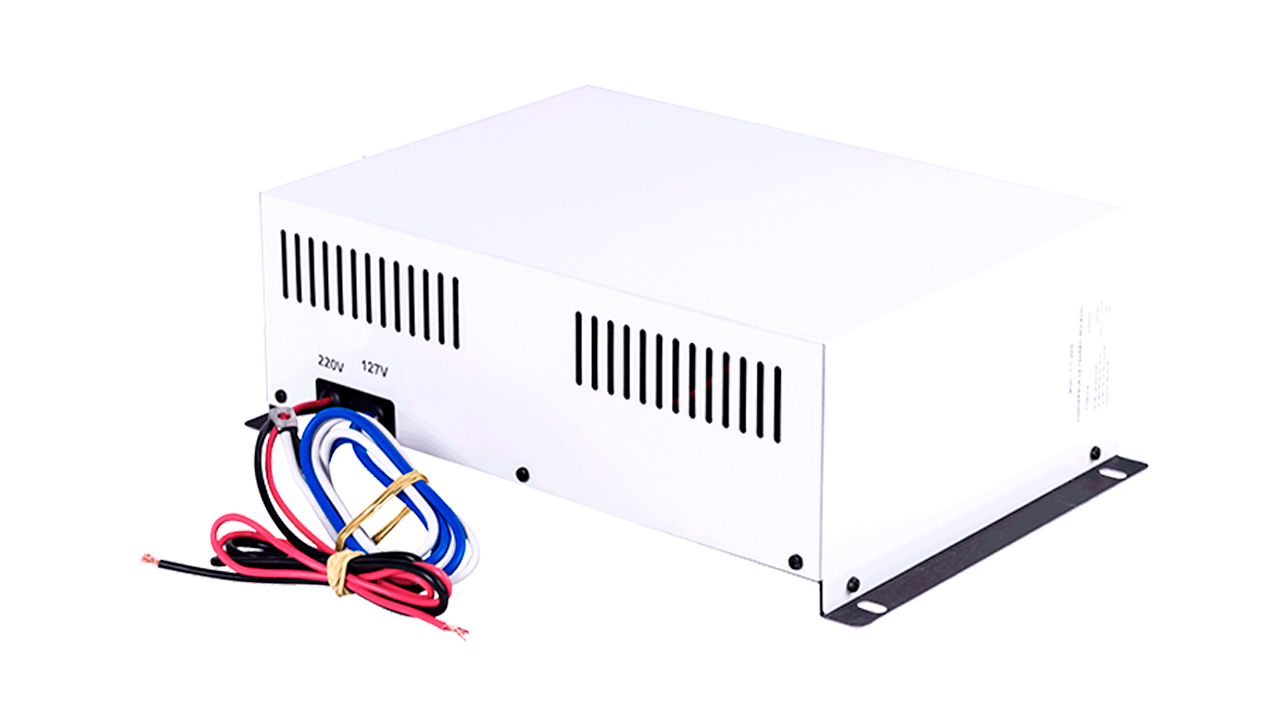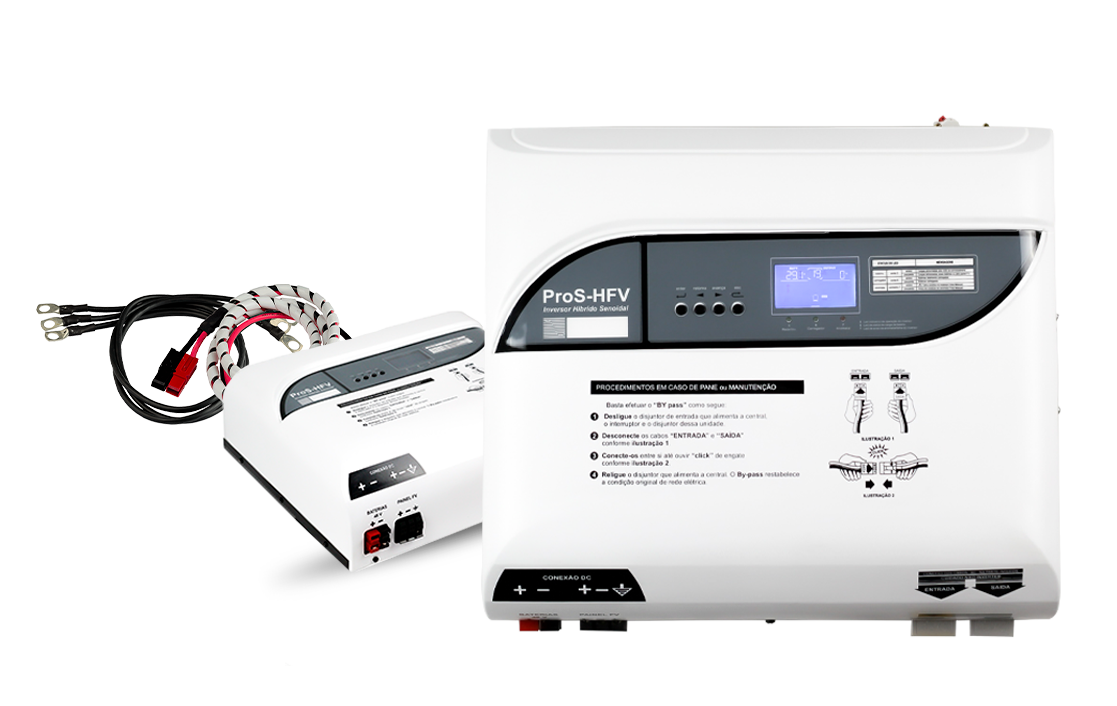 O sistema inclui um inversor de alta eficiência (controlador), um banco de baterias (banco energizador) e um carregador de baterias “True Charger”.